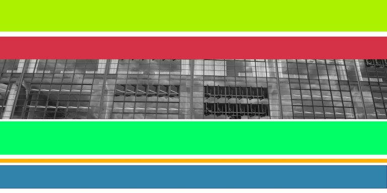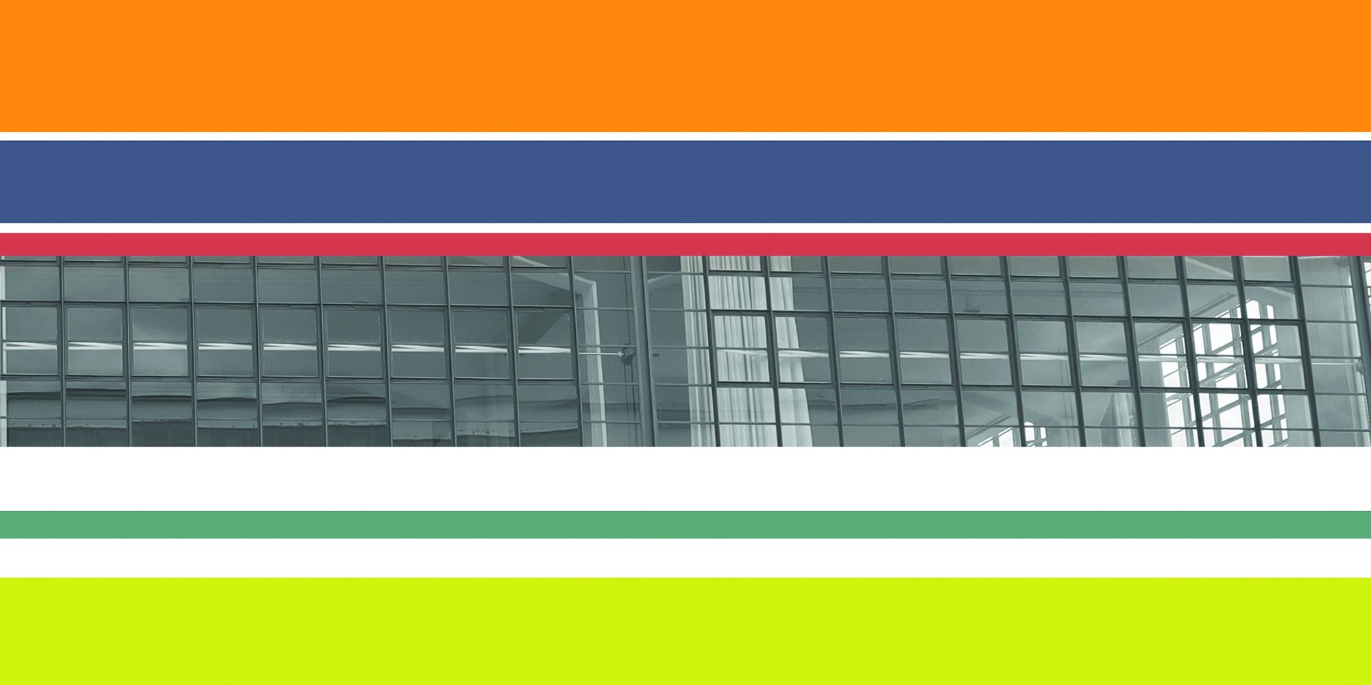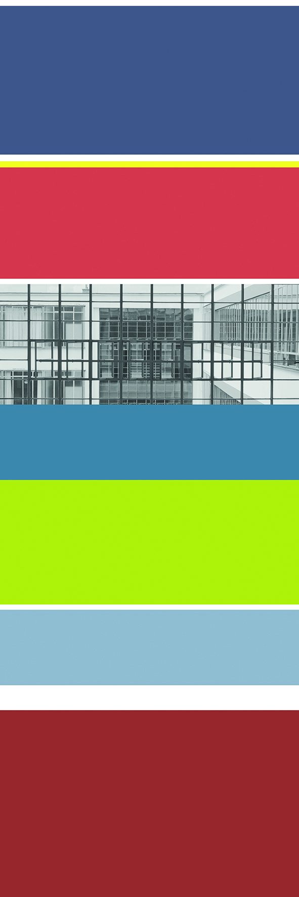 Architektur-Elemente in vertikale und horizontale Panororamen zu fügen. Dabei greifen die Farben auch u.a. die originalen 'Bauhäusler-Farben auf.