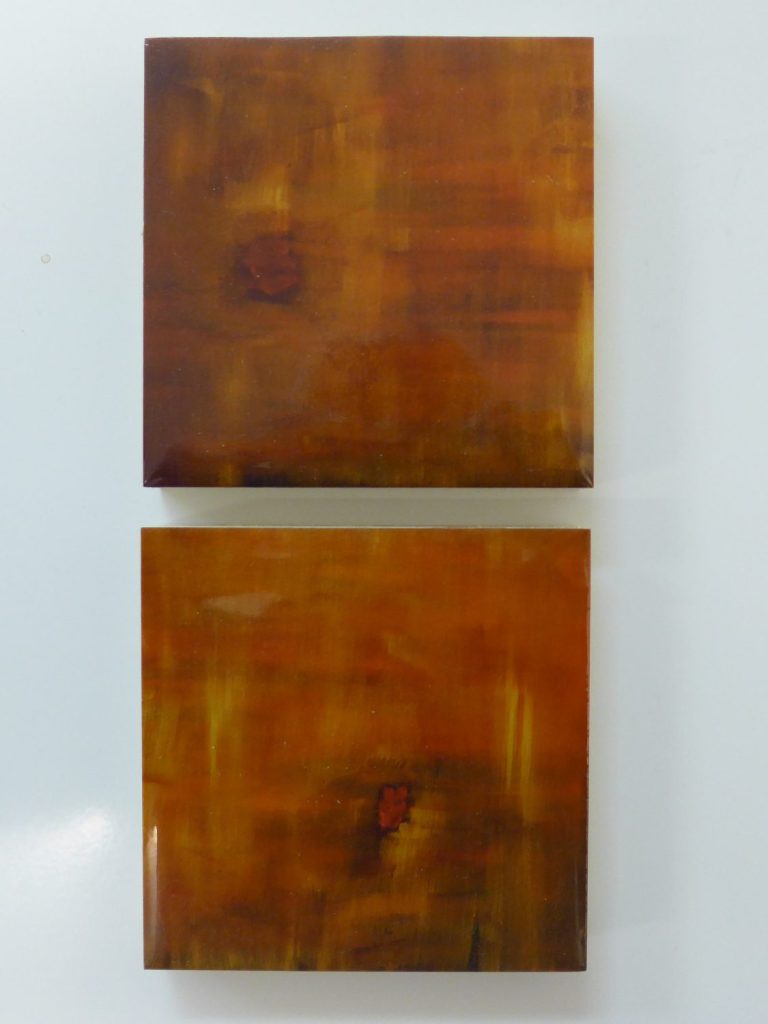 Kleinformatige Reihen von Malerei auf Holz mit Epoxidharz überzogen (10 x 10 cm bzw. 20 x 20 cm)