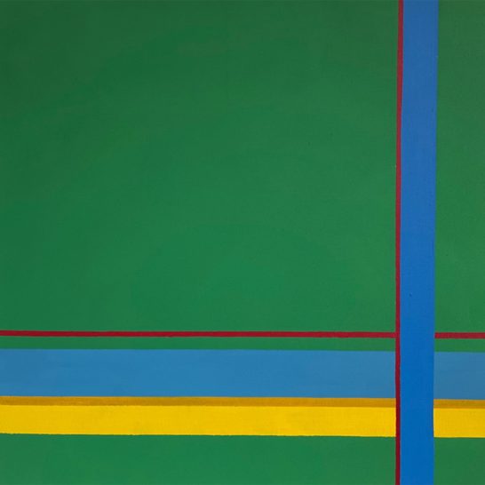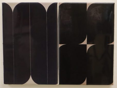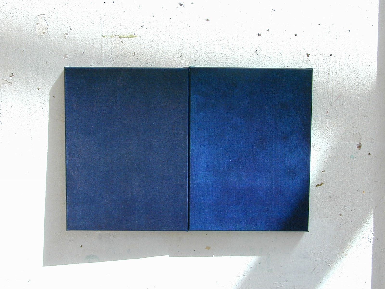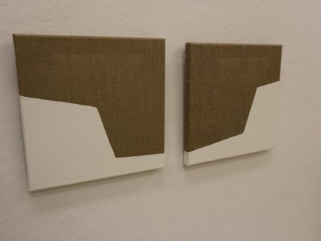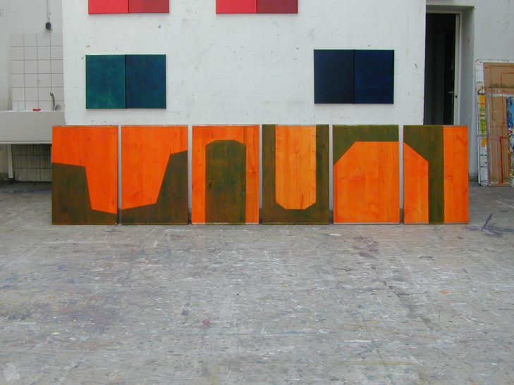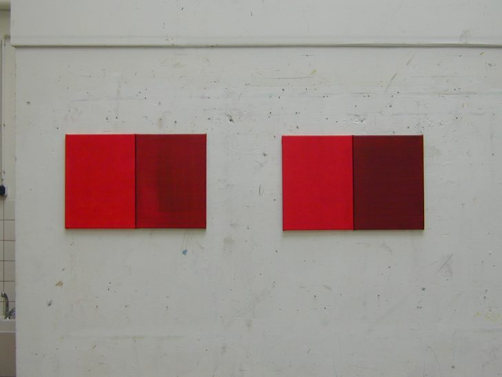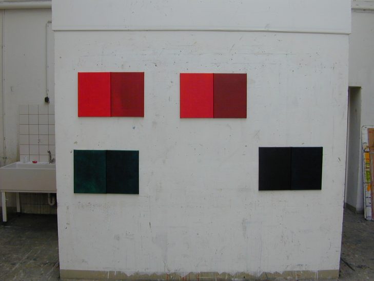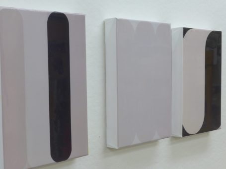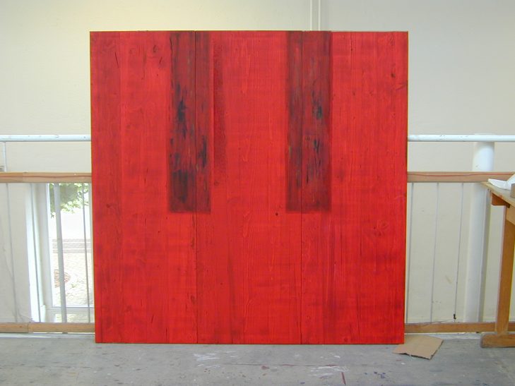 Eine Werkreihe, die auf Leinwand - auch mit Lackfarbe - einen formaleren Weg beschreitet.