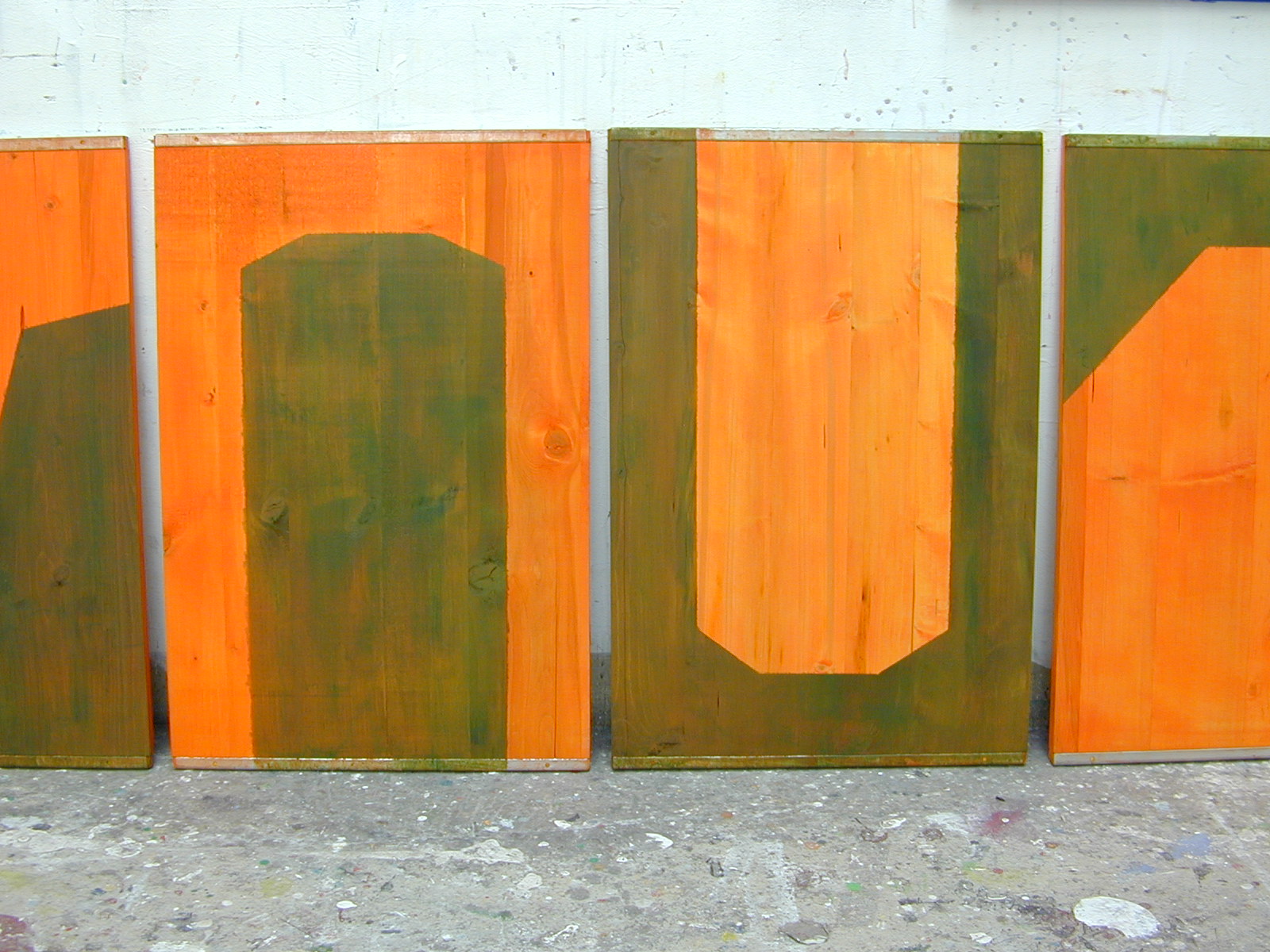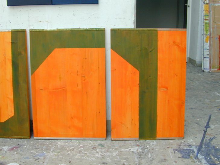 In den 1980er Jahren: Malerei mit Acryl auf Leinwand, aber auch auch auf Schalbrettern und anderen Materialien - überwiegeng konstruktiv.