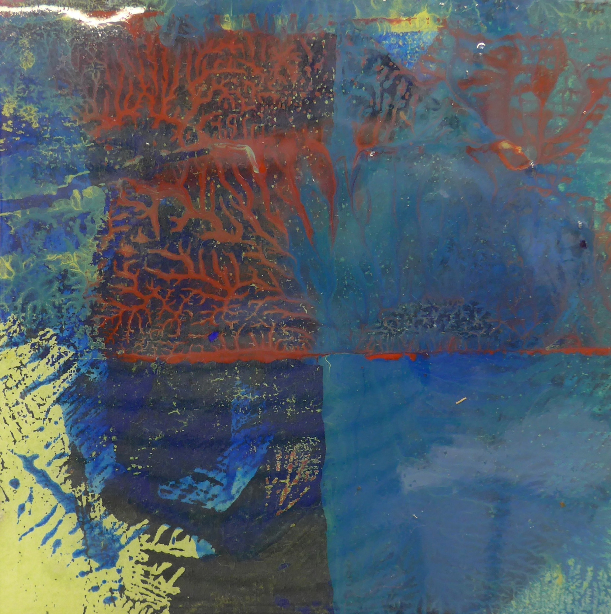 Malerei, eher kleinformatig - auch auf Holz - überziehe ich mit Epoxidharz. Es schafft eine neue Spannung in der Oberfläche und erzeugt eine andere Tiefe.