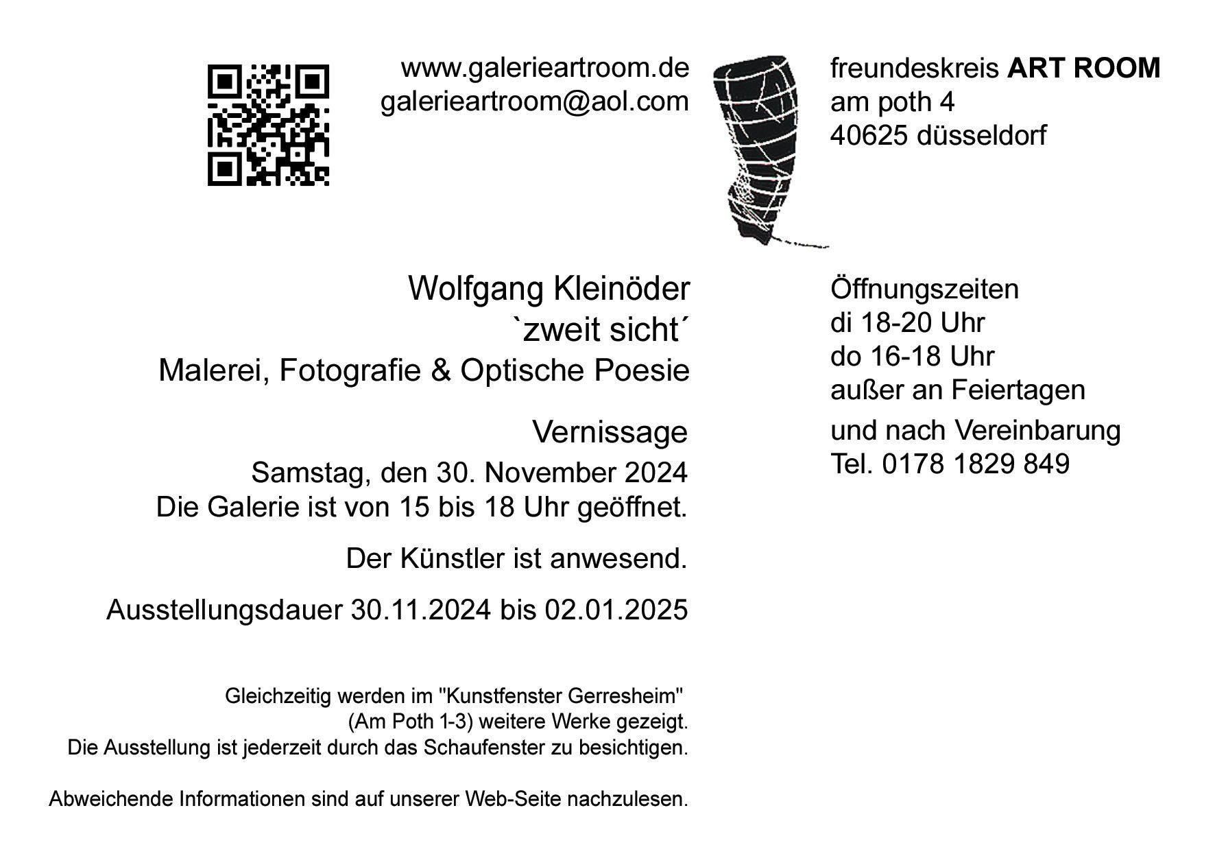 Meine Einzelausstellung in der Galerie ART ROOM ist die 2. nach über 20 Jahren. Daraus resultiert auch der Titel 'zweit sicht', denn die erste Ausstellung hatte den Titel 'einsicht'.