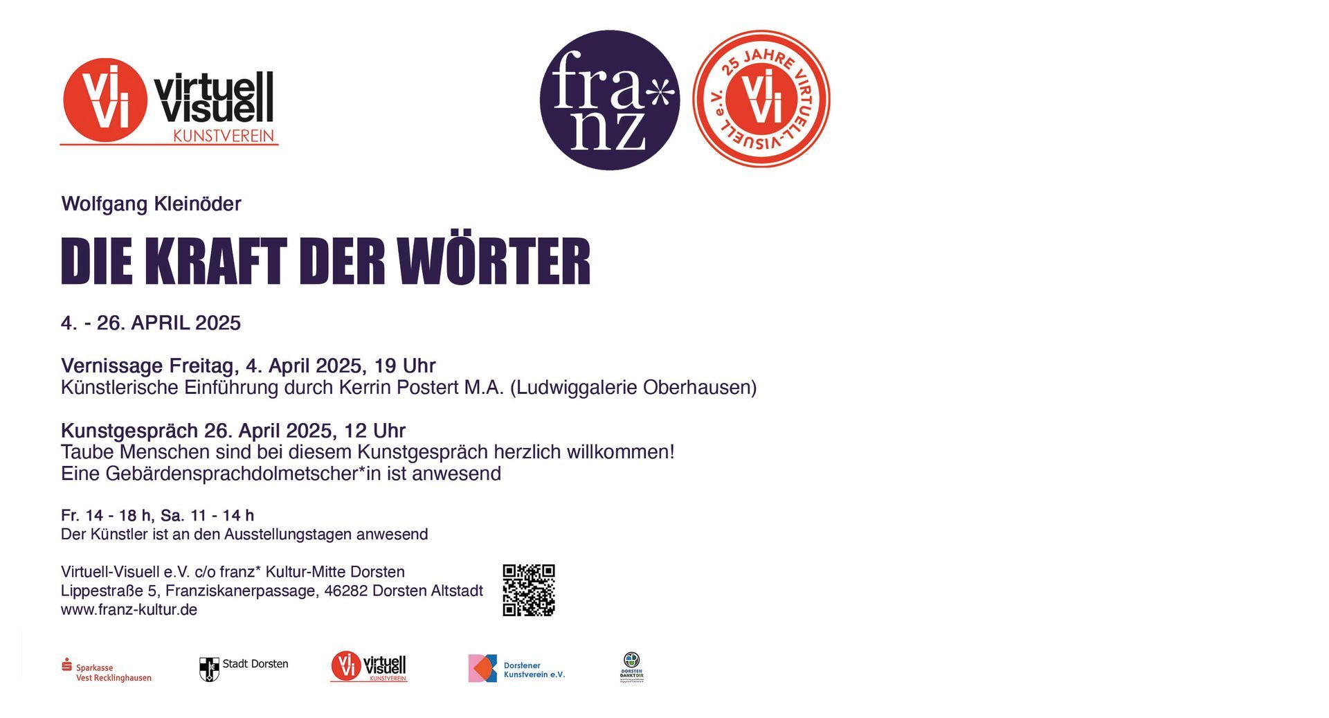 Als „Kick-Off“ präsentieren wir eine Gruppenausstellung, es folgen danach im Abstand von ca. 5 Wochen Partner- und Kleingruppenausstellungen, auch eine Schule wird ihre Arbeiten präsentieren. Im Jahr 2025 werden wir 8 wechselnde Ausstellungen zeigen.