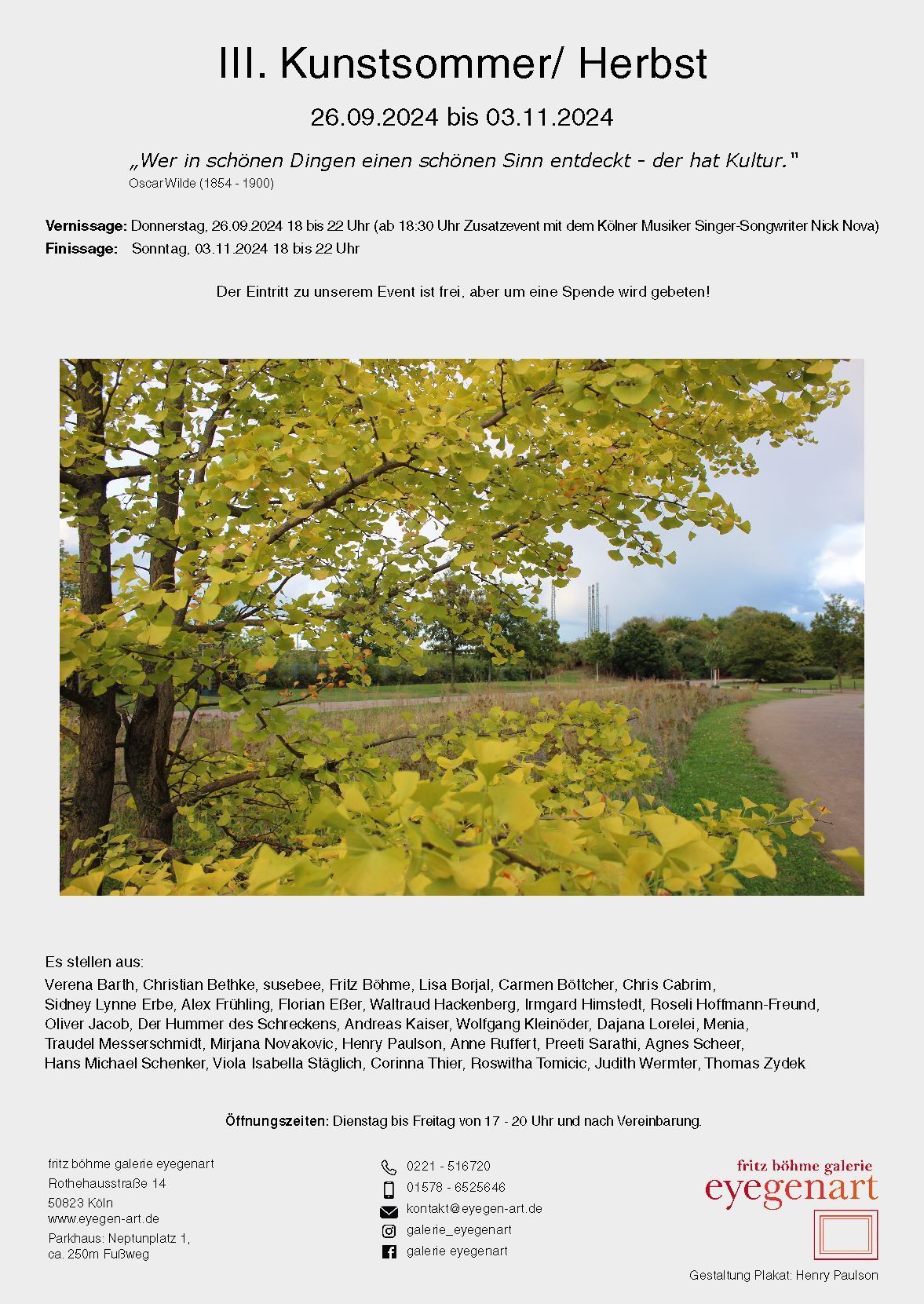 Die Ausstellung wurde am 26.9.24 mit einer tollen Vernissage eröffnet. Trotz schlechten Wetters kamen viele Besucher*innen in die Kölner Galerie, um bei Musik von Nick Nova die "Petersburger Hängung" in der Galerie zu erleben. Ich zeige dort bis zum 3.11.24 kleine Malereien, Wachsarbeiten und eine Fotoserie.