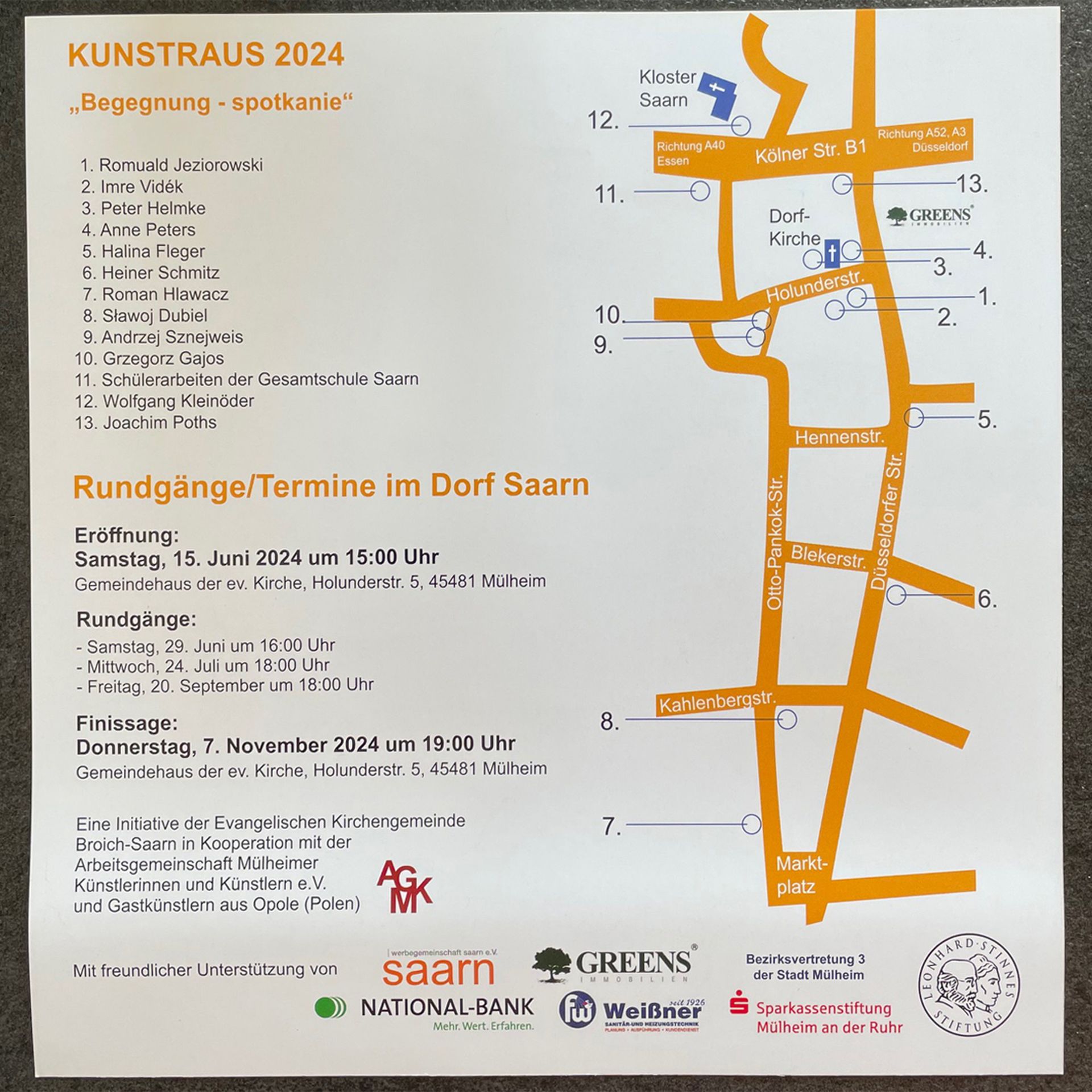 Saarn (Nr.12) vertreten. Eröffnet wird die Ausstellung „BEGEGNUNG-SPOTKANIE“ am 15.6.24 um 15 Uhr mit einer