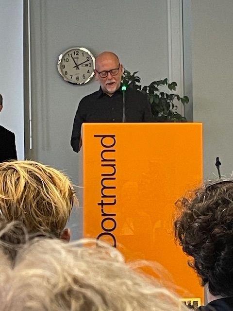 Christoph Mandera (Geschäftsführer des BBK Westfalen führte in die Ausstellung ein. Ein "Exkurs in die Tiefen von dreizehn Ateliers im wilden Westen" gab einen feinsinnigen Einblick in die ausgestellten Arbeiten.